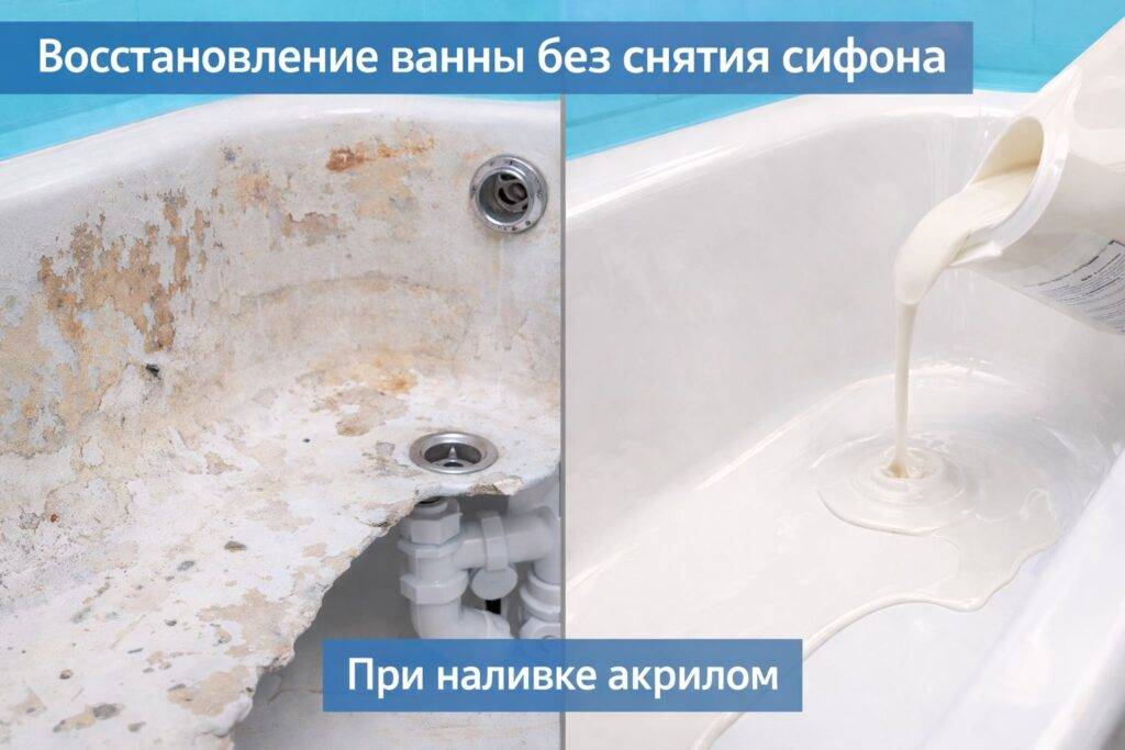 Реставрация ванны без демонтажа сифона